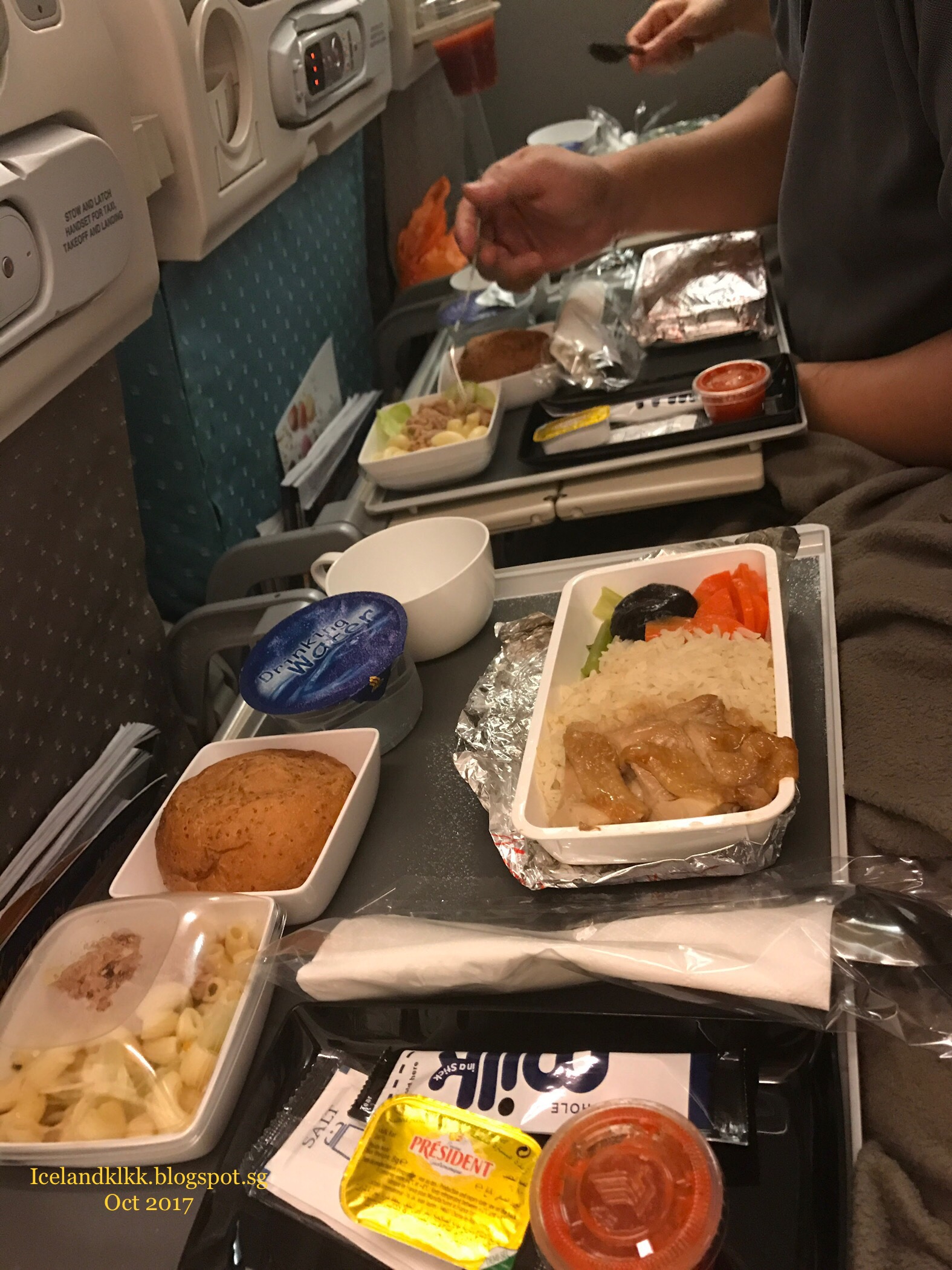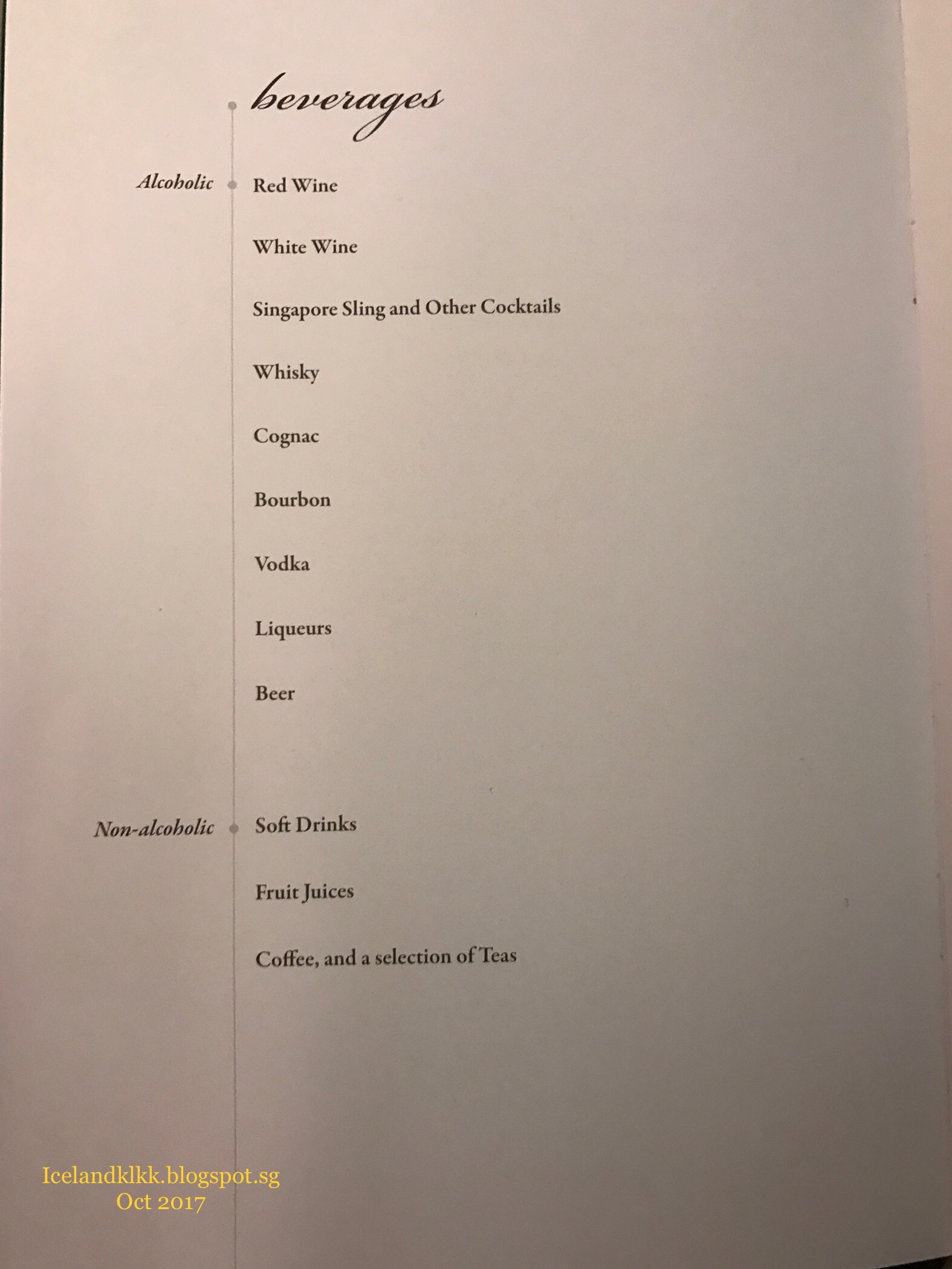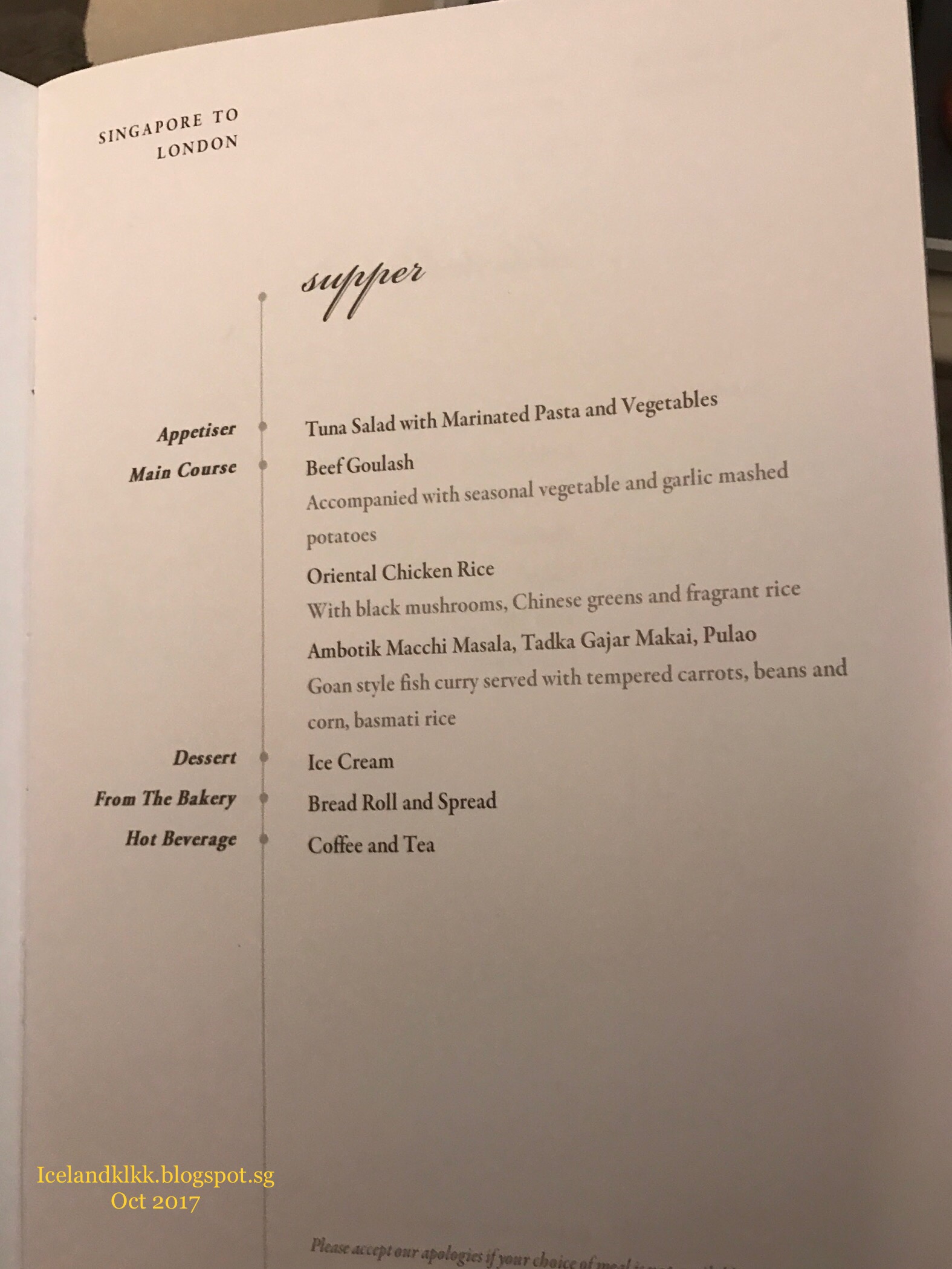 一上飞机,空服员递上了飞机餐menu。队友好介绍:Singapore Sling鸡尾酒。乘坐新航吃喝都不错,能不能睡着,就看自己了!