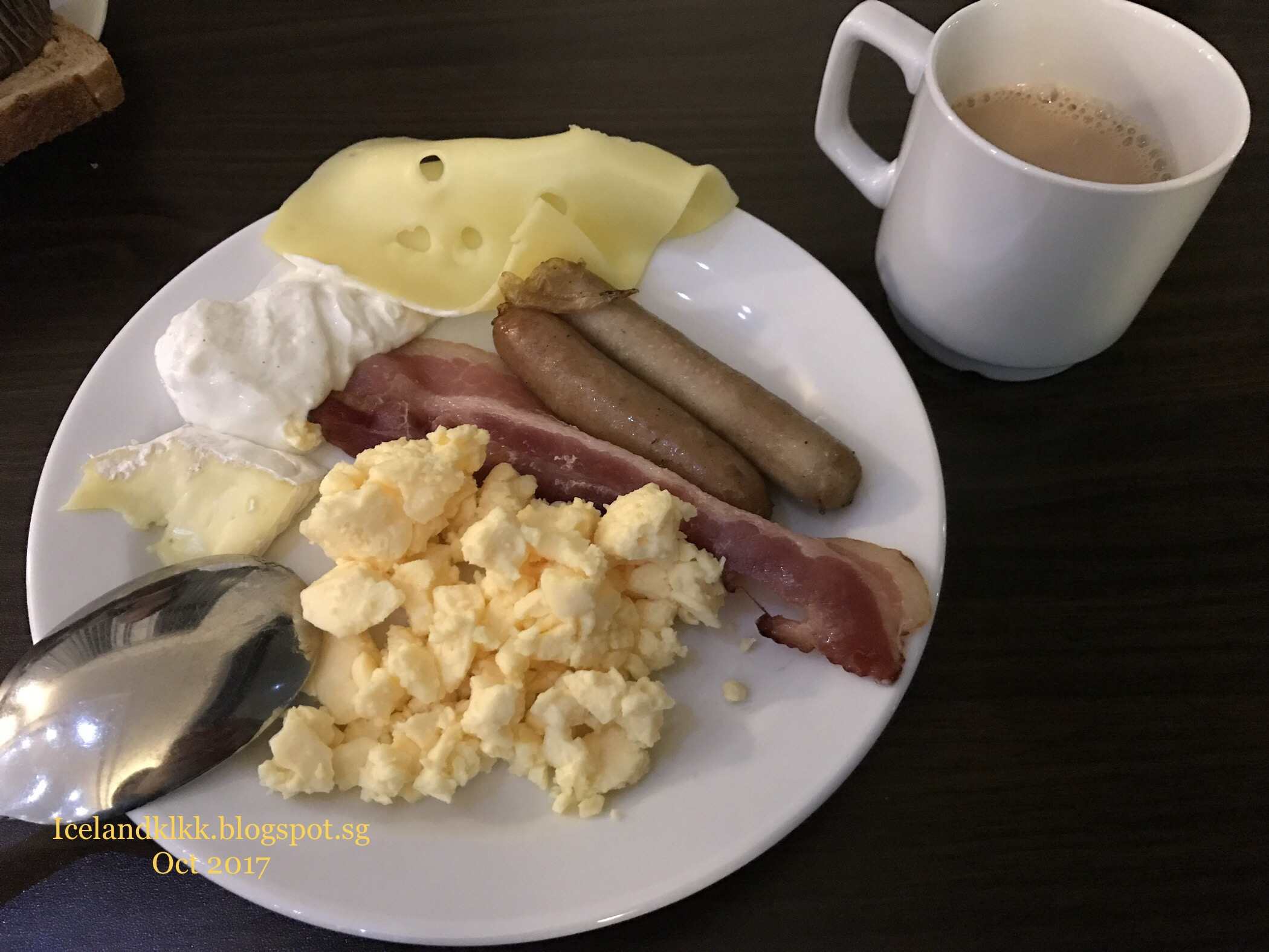 到餐厅吃早餐,同样的西餐。这家餐厅还有新鲜出炉的热牛奶!这里的牛奶蛮稀薄的,队友说这就是纯正的牛奶。我们现在喝的牛奶都是加了vanilla等添加物,才让牛奶变得浓厚。