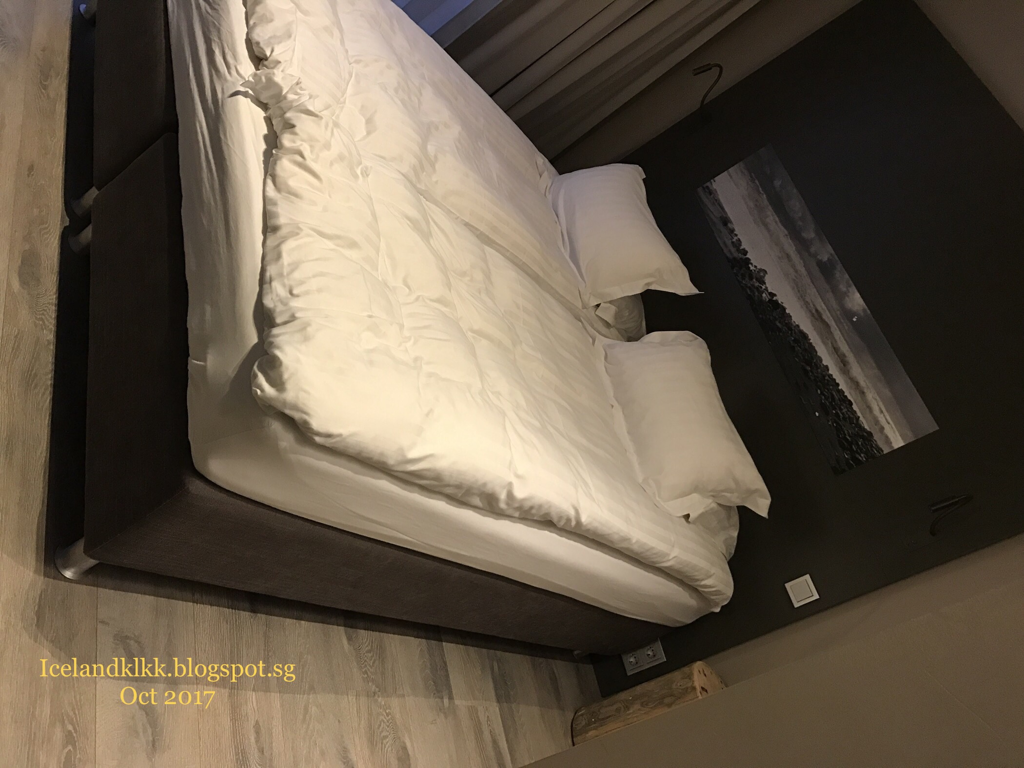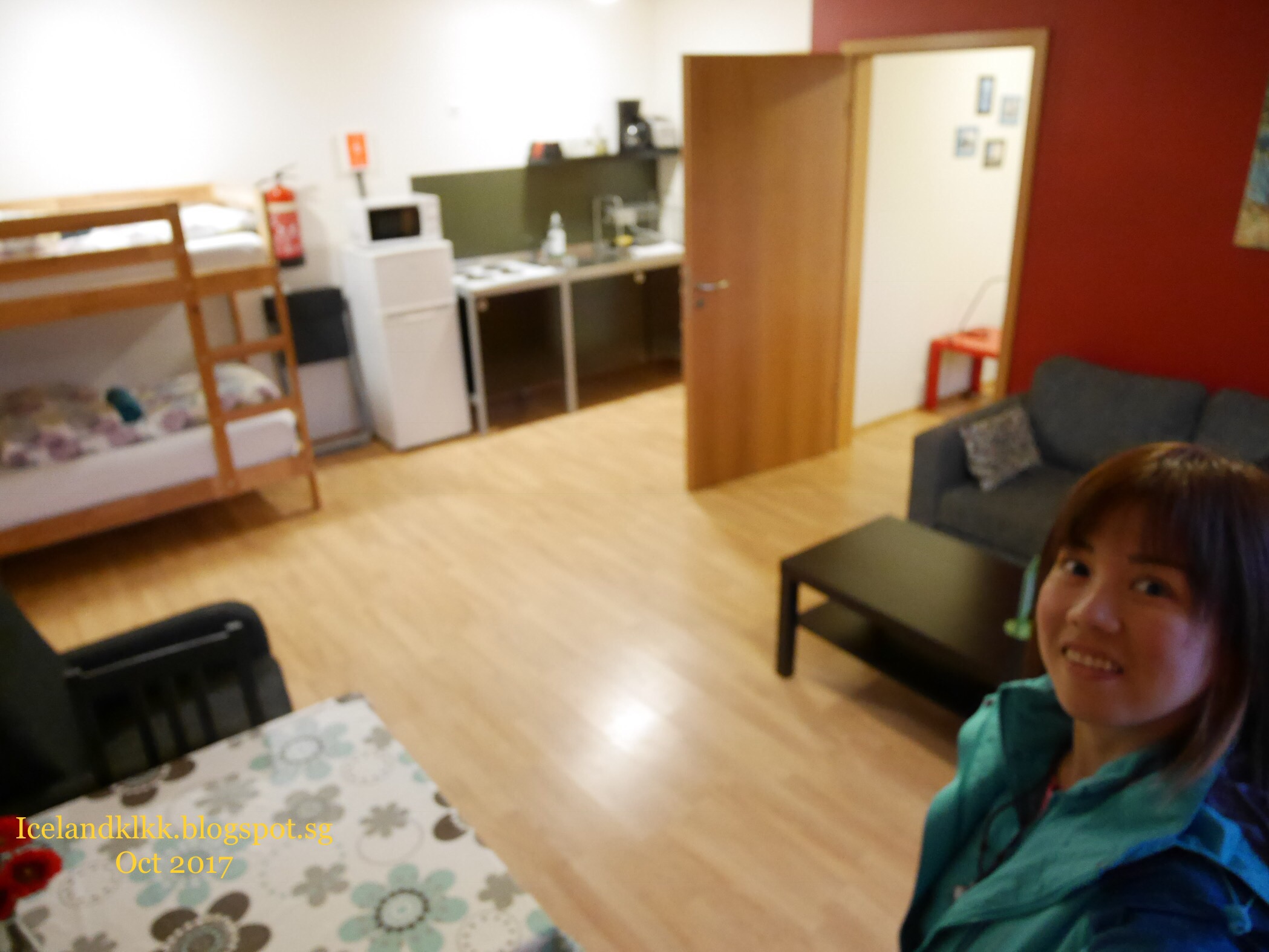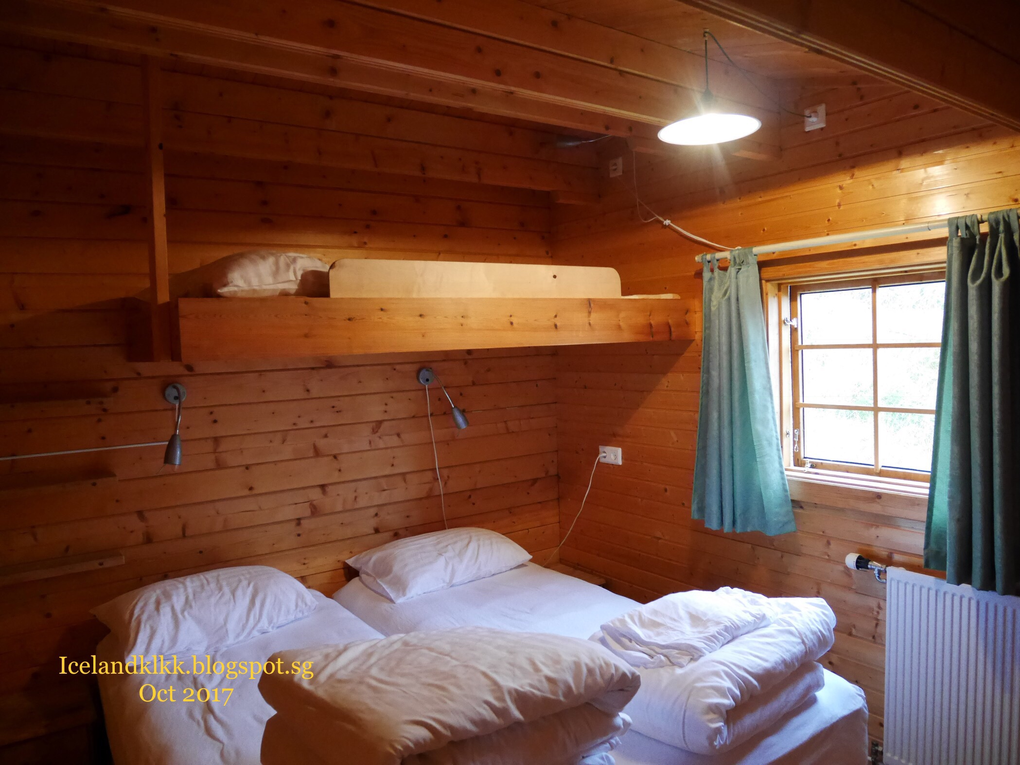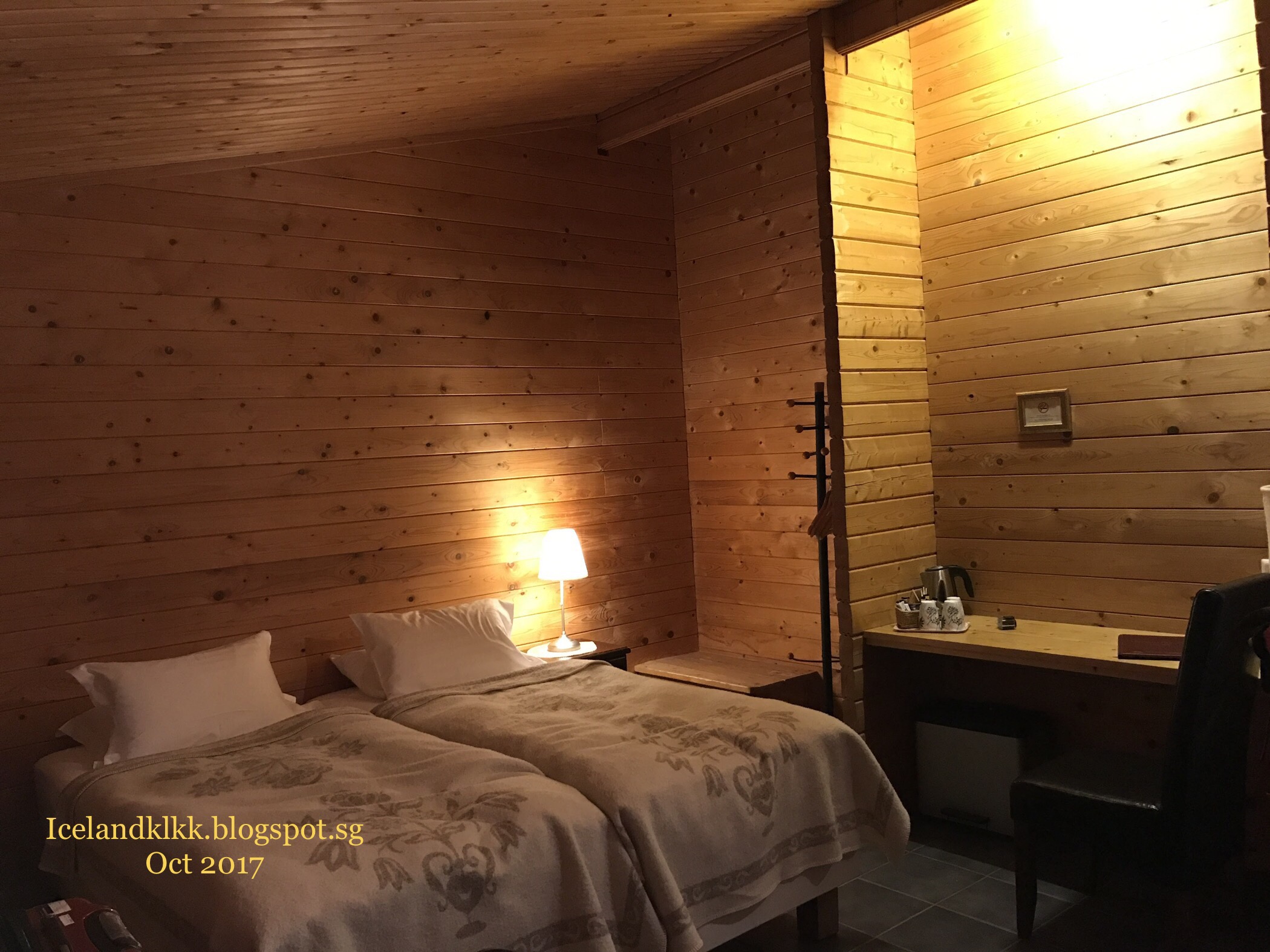这个酒店是这趟旅程中最贵的一间酒店。里面有阁楼的设计,楼下有张双人床、楼上有两张单人床。楼下还有落地窗可以看外面的天空,适合追极光一族!