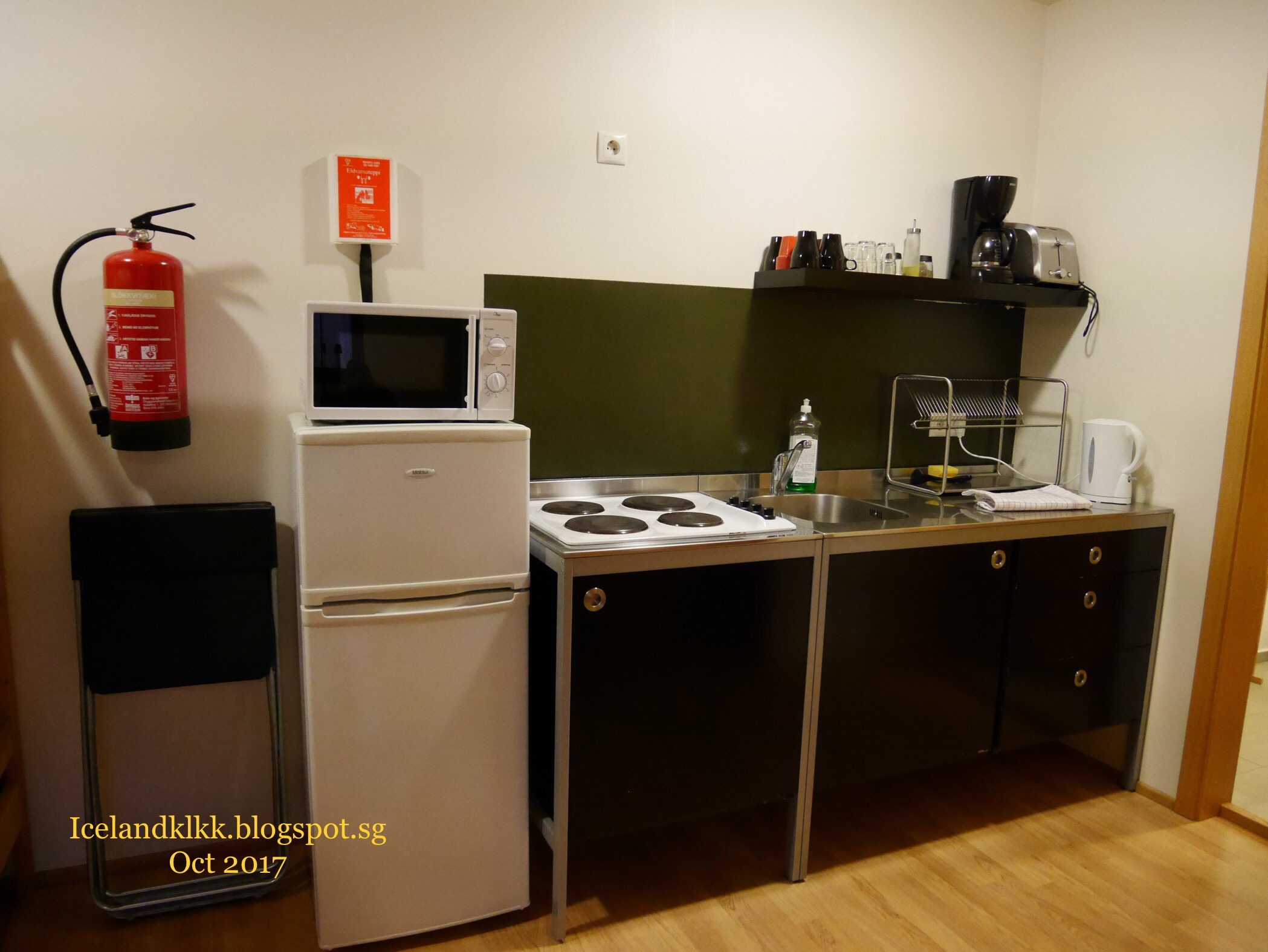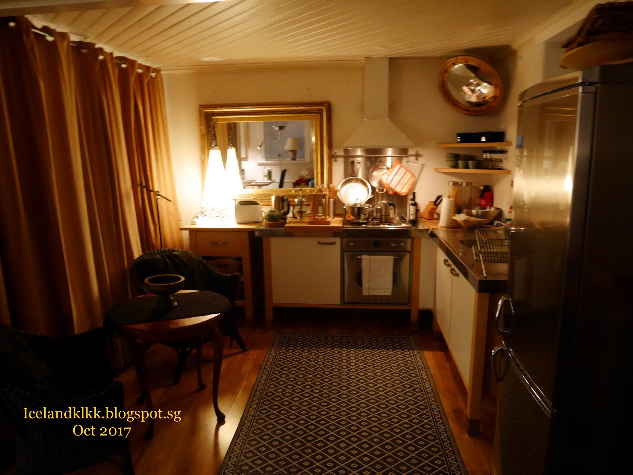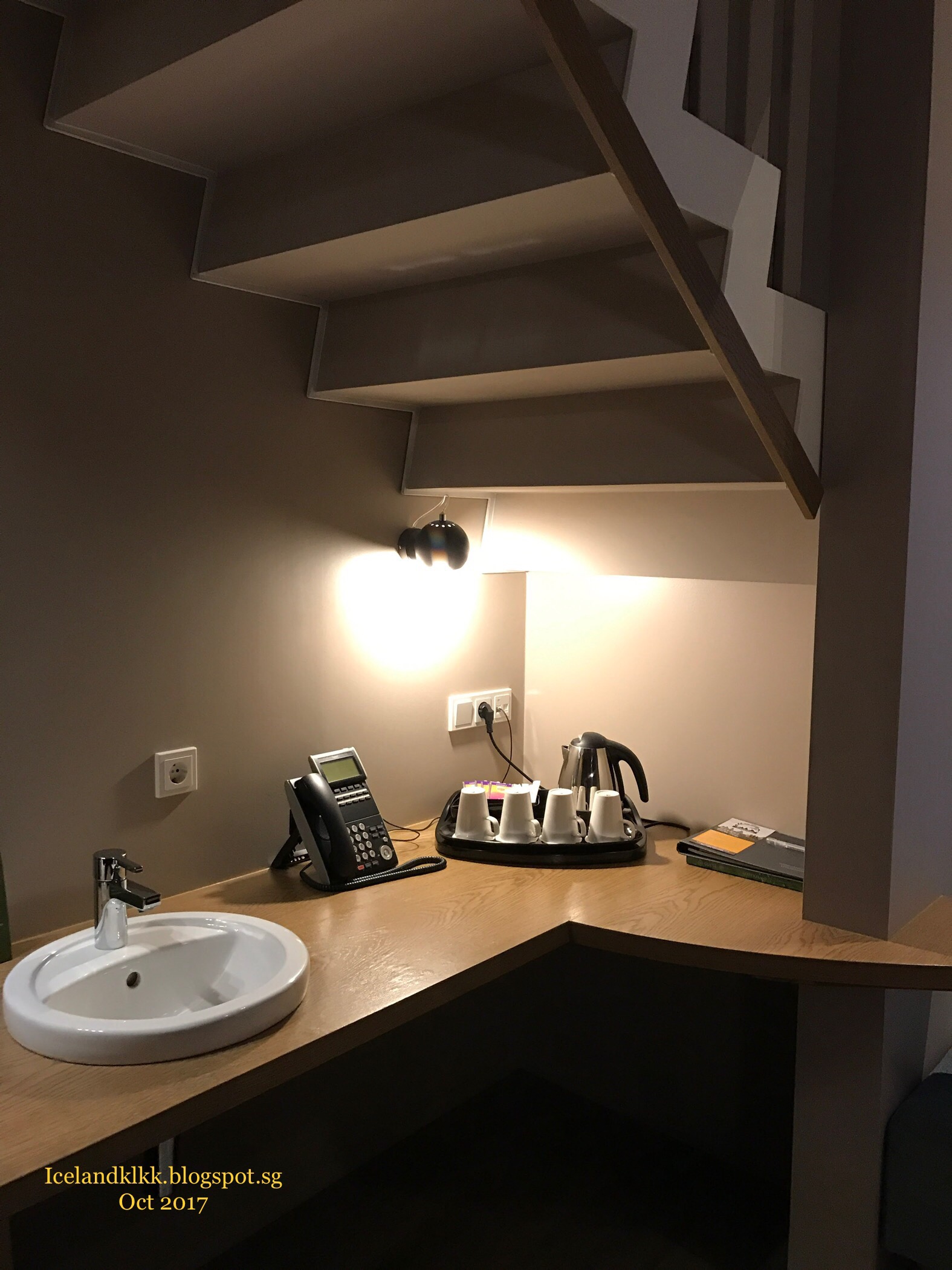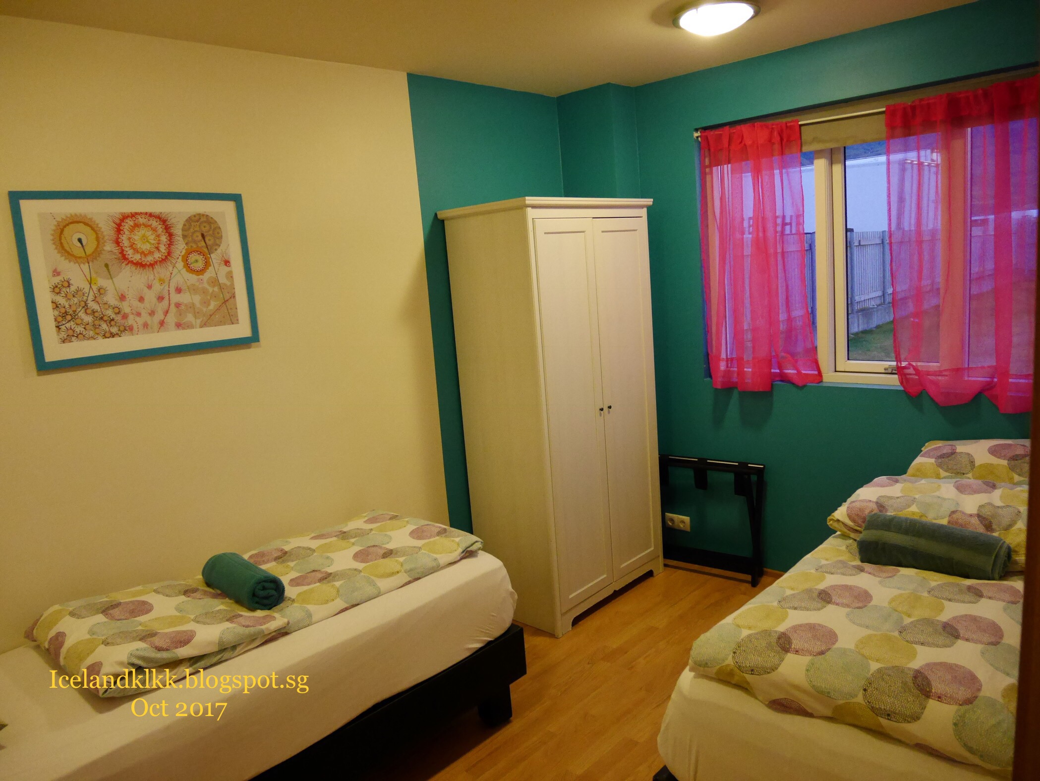 这个酒店是这趟旅程中最贵的一间酒店。里面有阁楼的设计,楼下有张双人床、楼上有两张单人床。楼下还有落地窗可以看外面的天空,适合追极光一族!