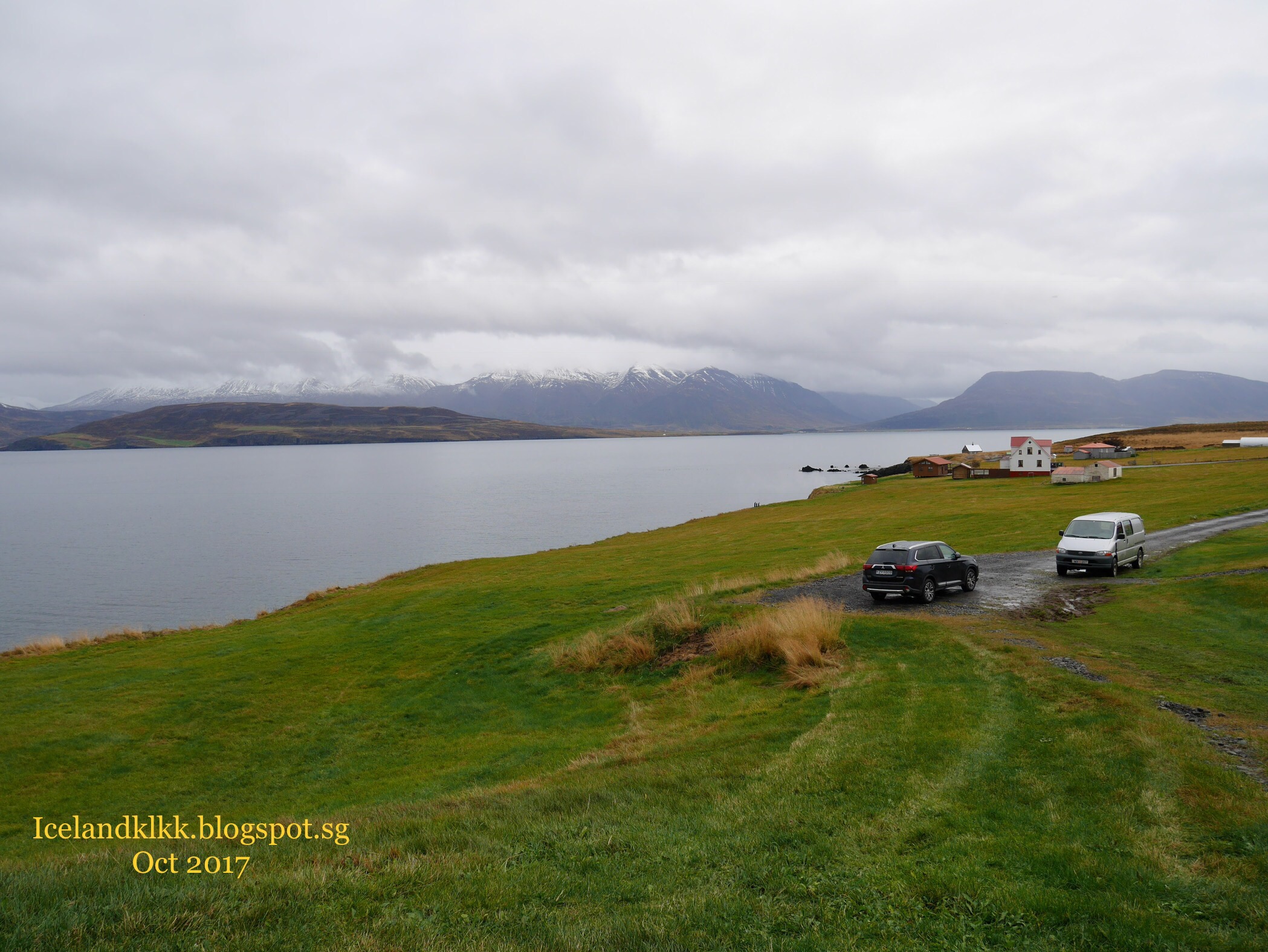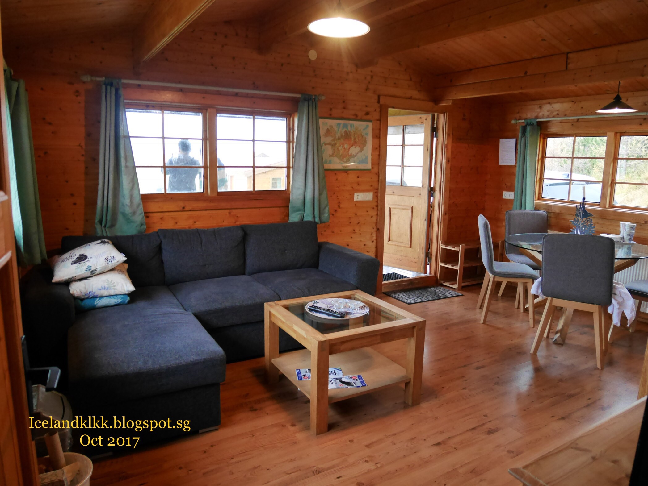 出海观赏鲸鱼后便到下一个城市阿克雷里Akureyri 。我们租的度假屋是在离城外20分钟的一个小村。当我们在傍晚7点钟时抵达。那时天已经黑了,没有路灯,在一个路口转进小路,又是unpaved road ,宝宝有点怕!只看见其中一间度假屋外有几个鬼佬在屋外烧烤,其余的都没有人。