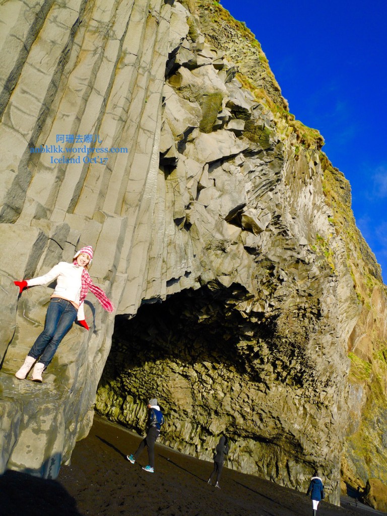 黑沙滩的风景是很美啦,加上独有的柱状玄武岩石,男男和女女都个别爬上去拍照了,我只充当摄影师,把他们都得帅帅、美美的!