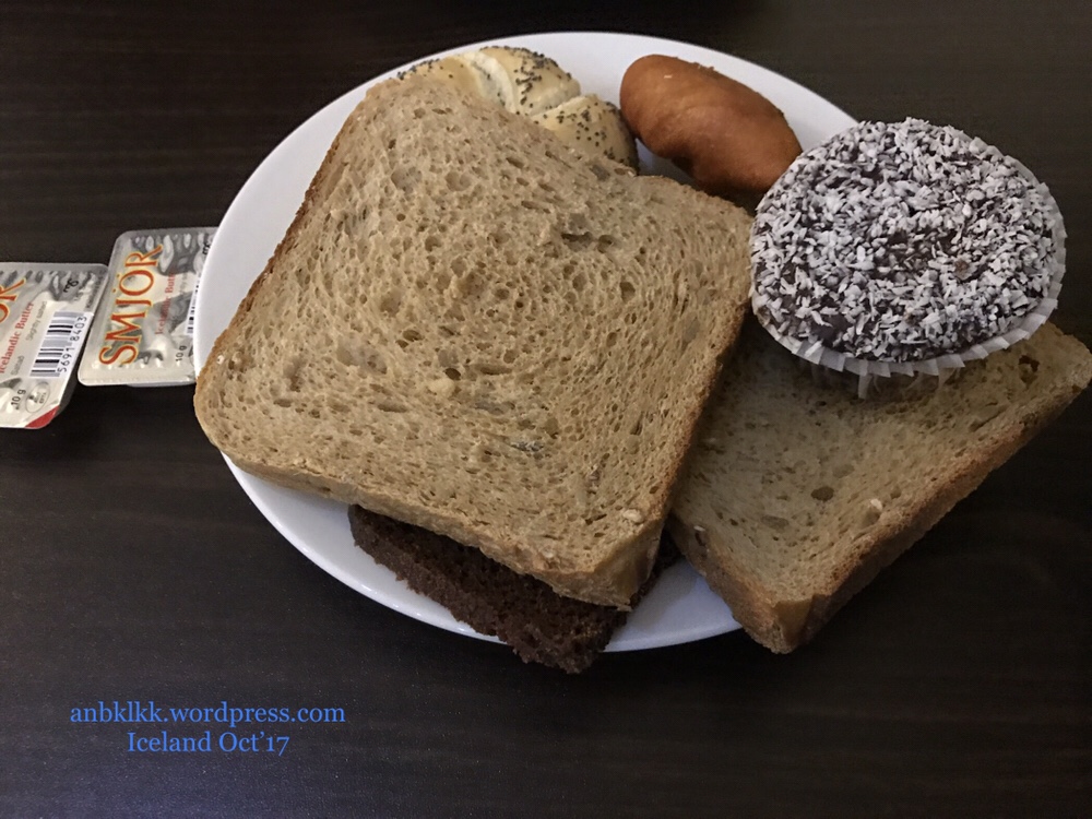 到了冰岛凯夫拉维克国际机场 Keflavik KEF,提了行李后,我们便到免税商店里买了一些零食、巧克力,还有啤酒、洋酒等等。购物完毕,我们便去提款机取钱。(我们只有在最后一个住宿才需要以现金的方式还旅费)。在提款时,他们的提款机显示1.0或5.0不等。他们的货币以1.0为1000,我们需要提5万克朗,所以要按50.0就好。由于我们的肚子不饿,所以便在机场买了两个便当当晚餐。