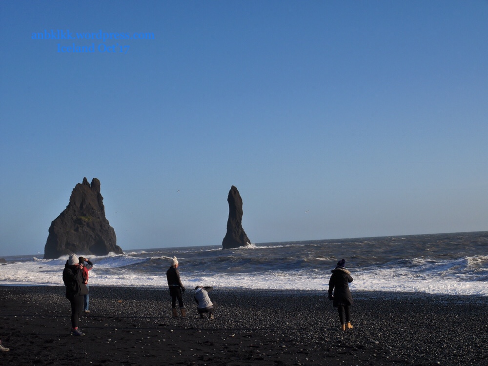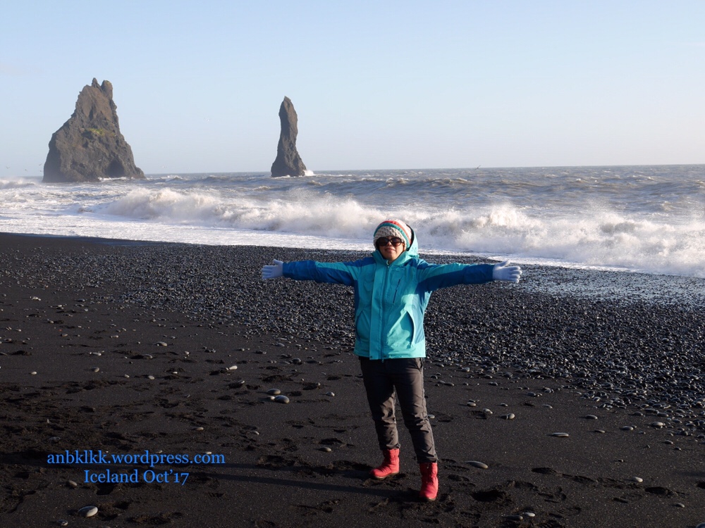 我们一下车,就感受到强劲的冷风在呼啸!我们抱着哆嗦的身体踏入黑沙滩。在沙滩游走时,那强风把我吹得摇摇晃晃的,我根本都不想把手从手套里抽出来拍照,真的太冷了!