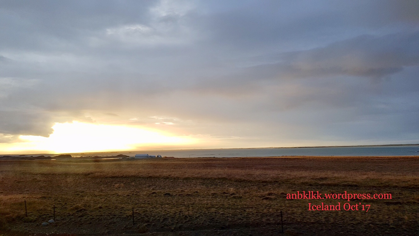 我们前往南部Reykjavik 雷克雅维克出发。约3个半小时的车程,一路上的雪山风景即将告一段落。下过雨的路上还看见彩虹呢,真美!乡间小路,一边依山,另一边伴海,不时还有成群的棉衣在路旁,造就了冰岛的独一无二。经过一个隧道,便到城镇了。交了ISK 1000的过路费(冰岛唯一的收费站),继续前往Art Centrum Apartments。