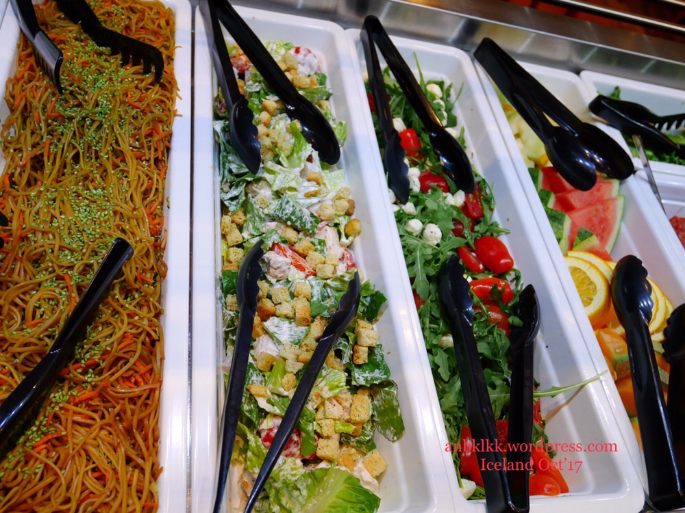 一张长桌,排列整齐的自助餐。这是我第一次看见自助餐以长方形的器皿盛菜。有pizza,浓汤和羊肉汤,吐司,甜菜根,和几种不同烹调的面面。饱餐一顿后,我们便到集合点报到。