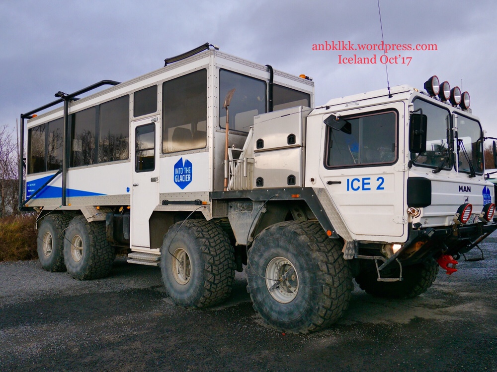 大伙排队轮流上车,这辆超级大的冰原大卡车8X8 Monster Truck, ICE 2号。这是阿珊目前为止坐过的卡车之最大,轮胎好大粒喔,冰川隧道之旅开始咯!
