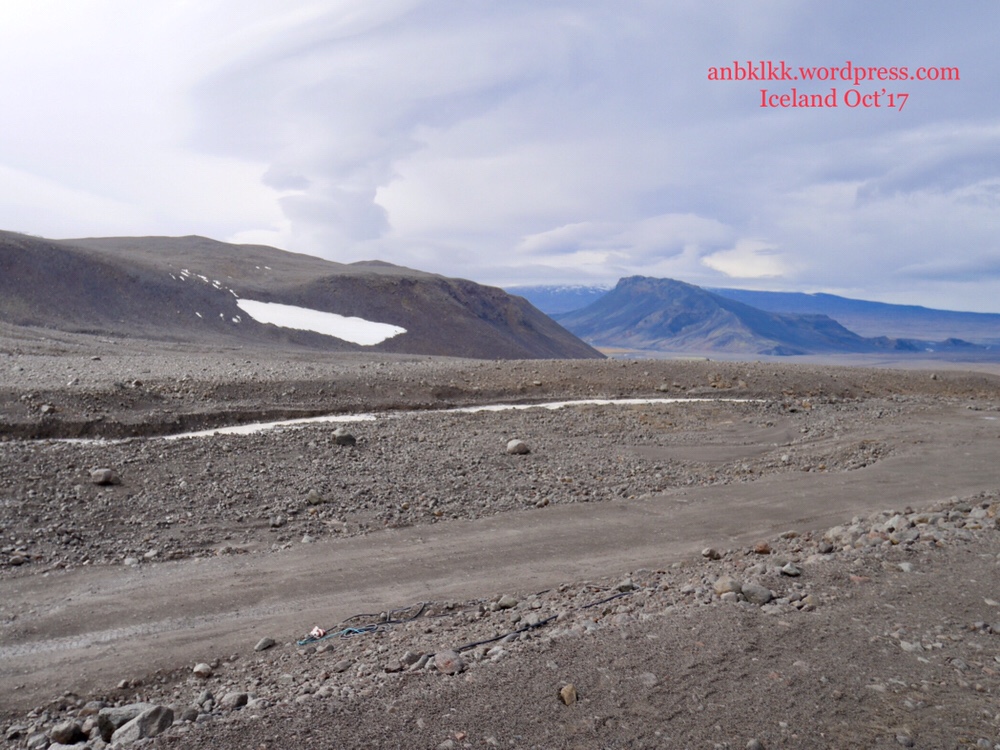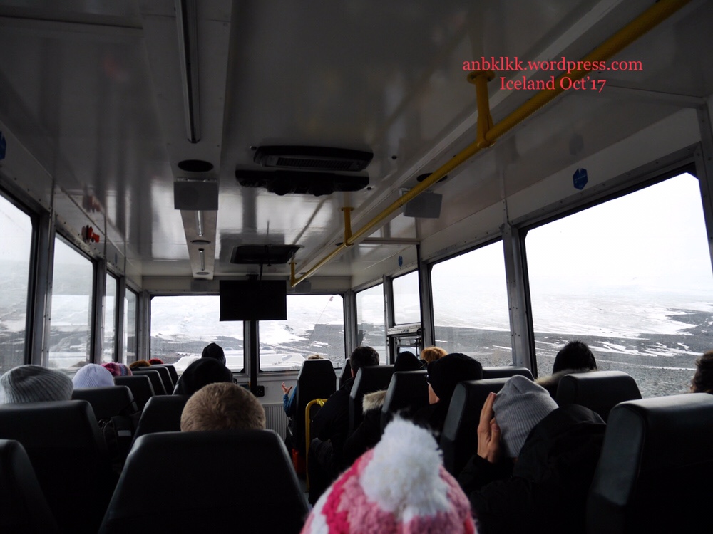 过了30分钟,经过一段黑沙碎石的山路然后抵达base camp,他们准备了流动厕所,因为来回冰川隧道要1个小时,再加上1小时的导览,我们最好先解决一轮。这是卡车往冰川沿途风景,外面的路渐渐被雪覆盖,全白的雪山出现了,好壮观哦!