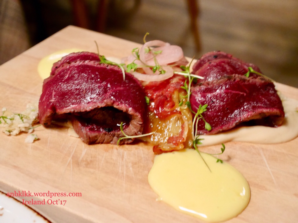 我们步行约10分钟到达,店里已坐满人。女女事先已预定好位子(在冰岛用餐,如果行程想要顺顺利利的,预定位子会避免浪费时间,在这里要给女女一个大大的赞👍,全程的酒店和餐厅预定都做得真好!)