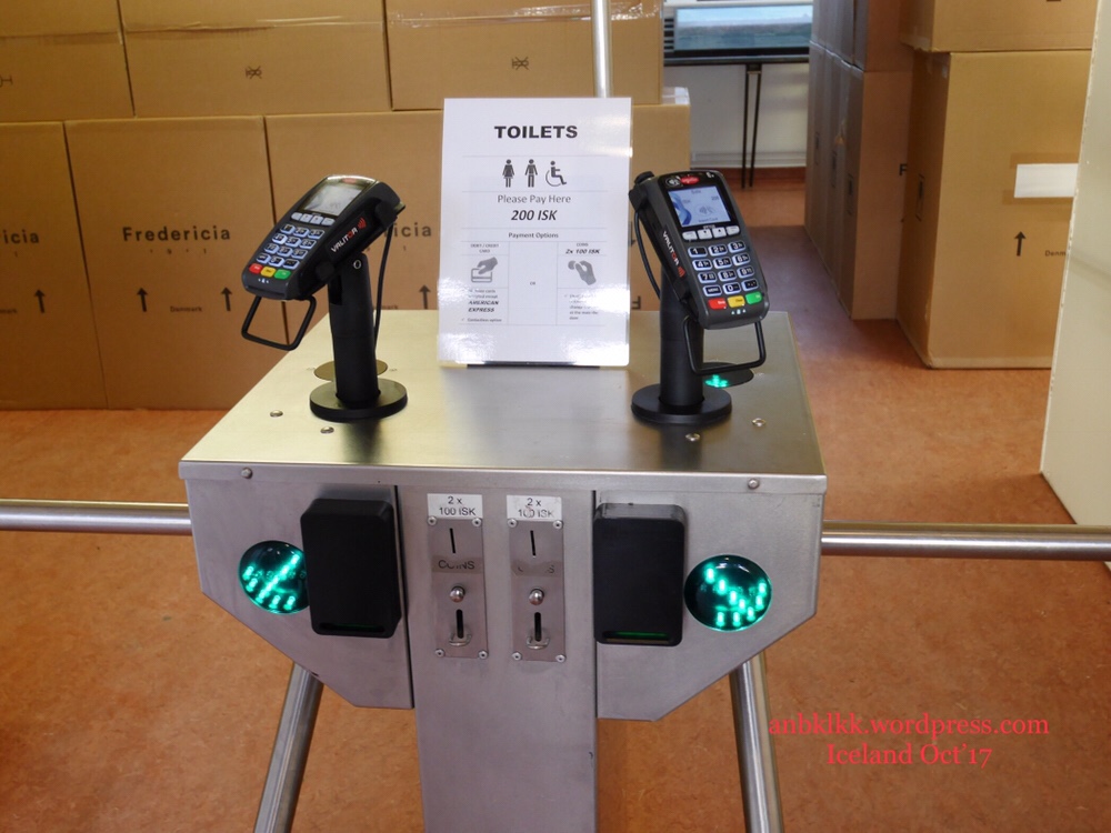 虽然黄金瀑布的入场免费,但是使用公共场所是须付费的。墙上贴着“入场费”。无需零钱,刷卡也可以!