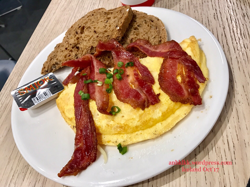 在机场的Bistro吃早餐。点了鲜虾鸡蛋三文治,培根荷包蛋套餐,卡布奇诺和摩卡。ISK 1450, Sgd 20 鲜虾好好吃喔,肚子喂饱后我们便登机了。
