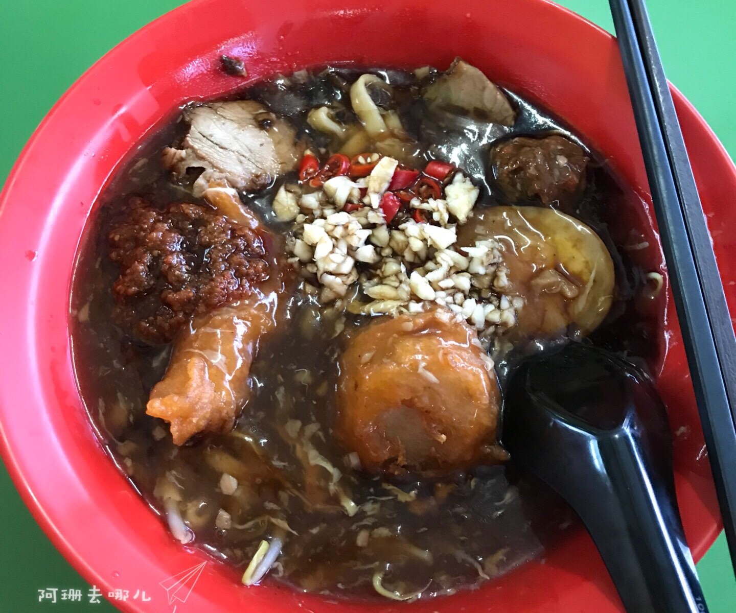 如何才能知道什么叫天然的好味道吗?那就是每当阿珊把整碗卤面吃的光光,卤汤也喝光光,之后都不口渴,这就证明了摊主用料的用心!而一碗能让我饱半天的卤面,只售新币$3.50。