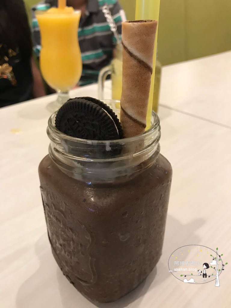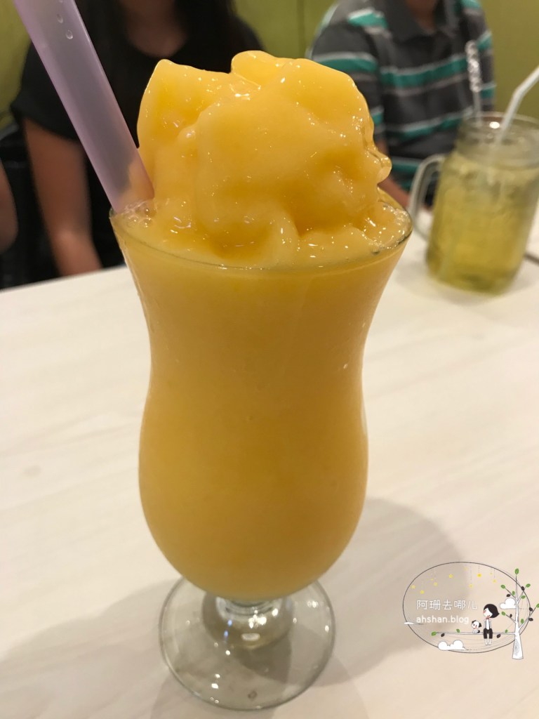 我们点了几份套餐试试,店员先端上饮料,有芒果冰沙,巧克力冰沙,冰柠檬茶还有胡萝卜鲜奶。那些饮料呈上时非常有巧思,这让我对接下来点的菜肴有所期待!