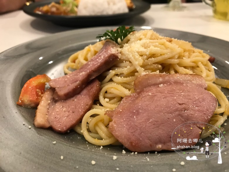 我们点了薰鸭肉意大利面套餐Spaghetti Aglio Olio with Smoked Duck SET,那鸭肉片口感嫩滑,再加上咸甜有致且不乏弹性的意大利面,让人吃得津津有味!