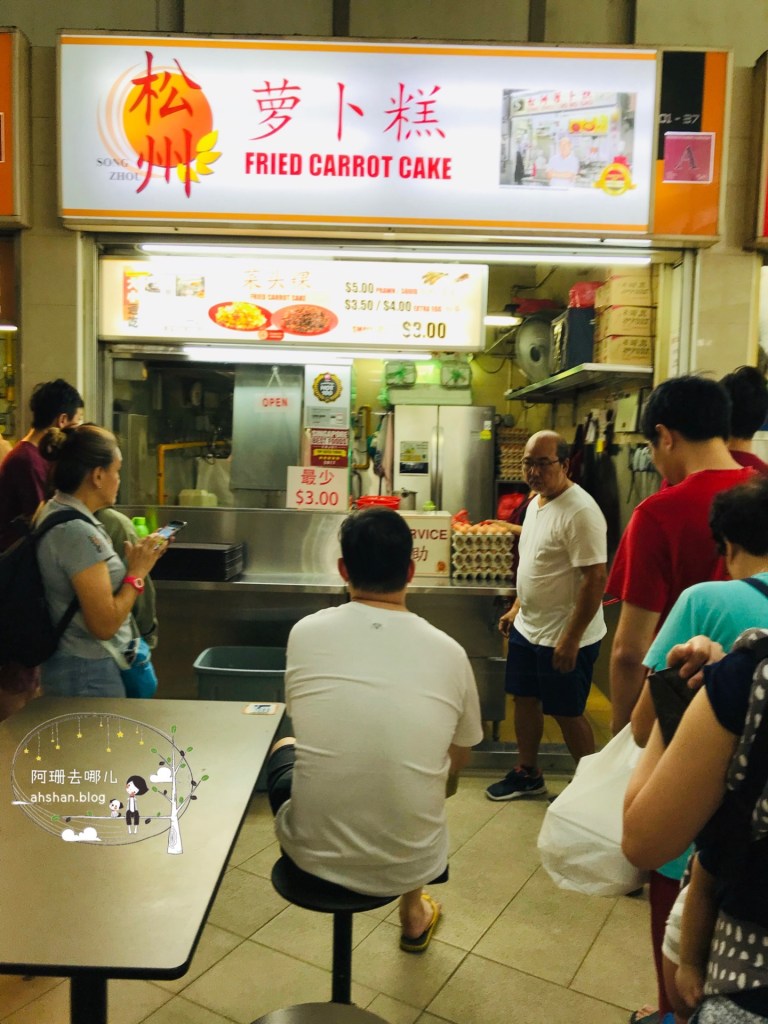 松州萝卜糕在Bedok 地铁站小贩中心经营超过30年,现在由老摊主的儿子掌厨。松州一开始只售卖白萝卜糕。为了迎合年轻一辈的口味他们推出了黑萝卜糕,白的偏咸;黑的偏甜。摊主在炒萝卜糕时下料绝不手软,每吃上一口萝卜糕还可以吃到满满的菜脯和蒜。再加上他们独门的调味,那盘萝卜糕绝对可以满足食客的味蕾。
