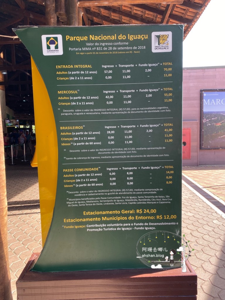 把行李放在房间,换套运动装,防水背包,相机防水套(重要物件随身),还有涂防晒霜就出发了!下午3点,叫了Uber,上车时跟司机说到Iguacu Park,因为这整个地区都叫Iguacu,3:30分抵达国家公园(坐标:-25.614,-54.480)。