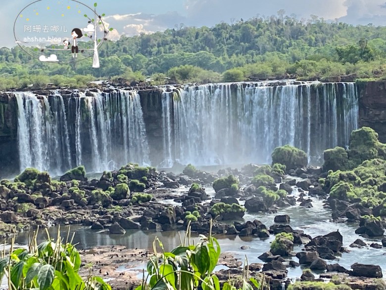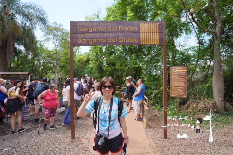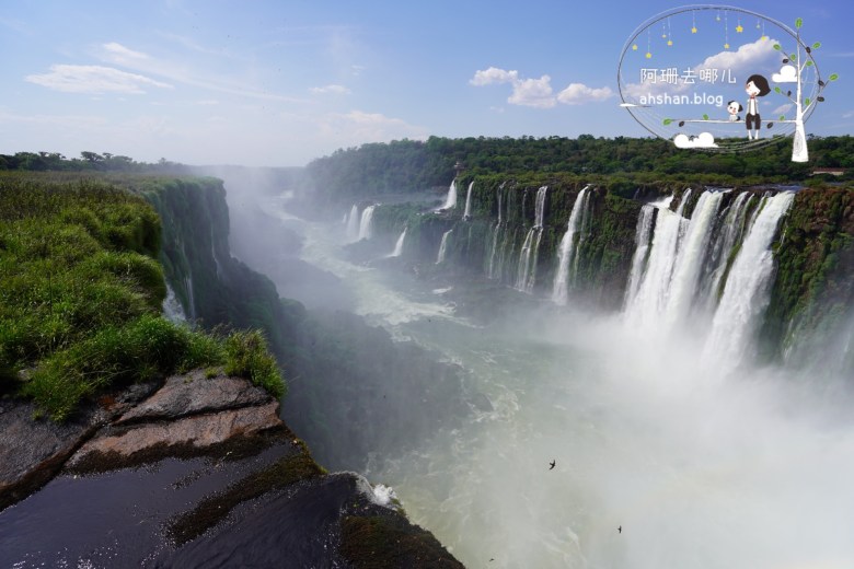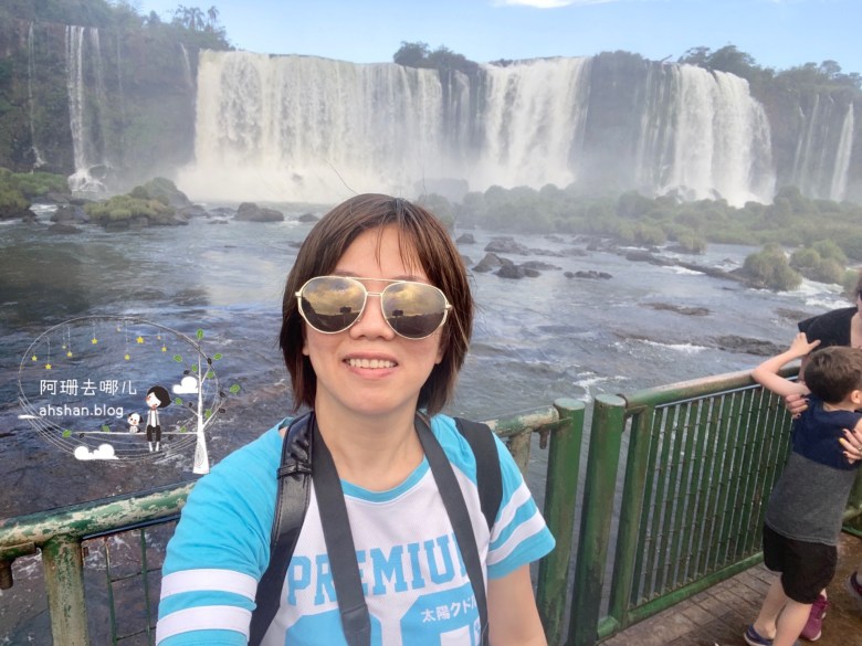 1点55分,火车开动了,2点10分到Garganta del Diablo站,导游给我们1个小时的时间参观魔鬼咽喉。1100米长的步道花了约20分钟走到了,还没有看见魔鬼就开始听到流水轰隆的声响,那时真是超级期待!亲眼看见魔鬼咽喉,看着雷霆万钧的水量从峡谷顶咆哮而下,四处飞溅的水花化成层层白雾,再加上萦绕在瀑布中央的彩虹,就像个仙境,也成为我这趟伊瓜苏之旅最壮观与最难忘的景点!