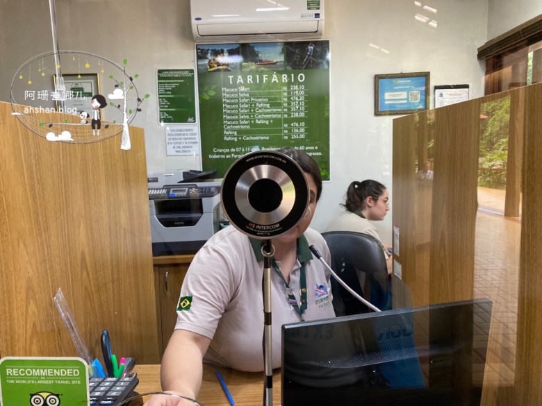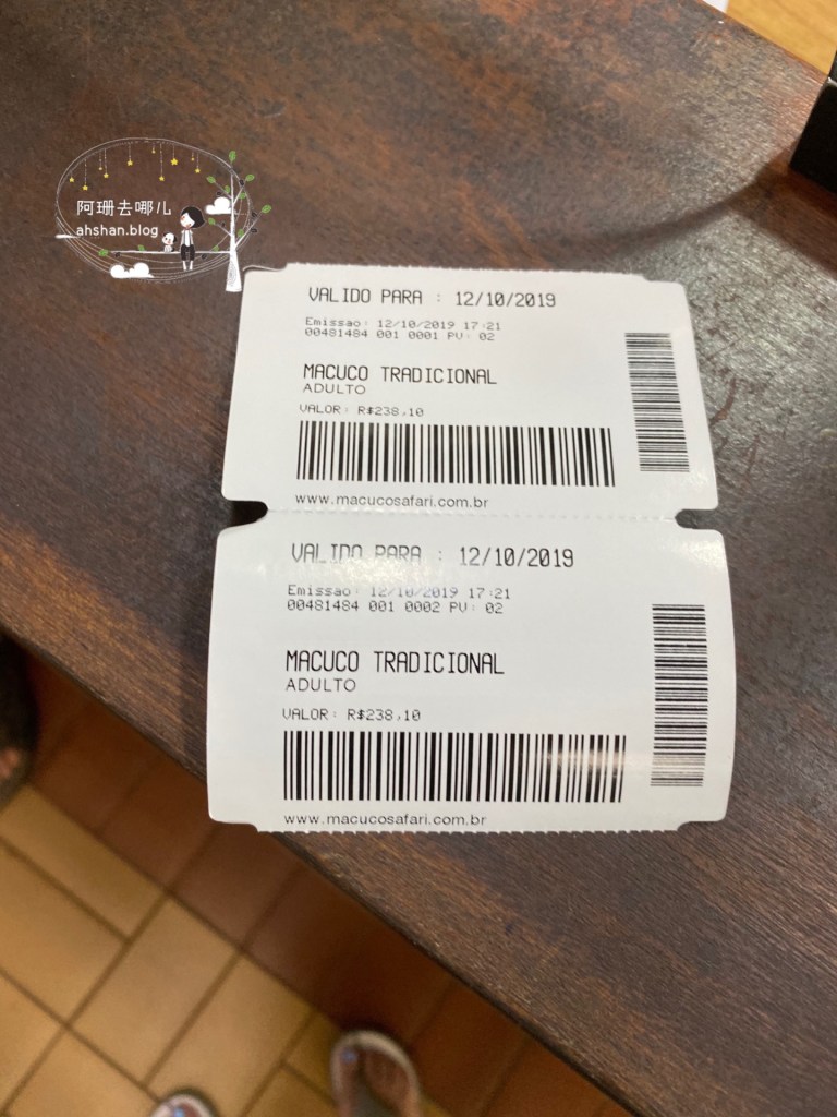 由于我们要赶在5点半之前到船游站Macuco Safari报到,不然船费会泡汤(R$ 238.10),在5点左右我们上了游览巴士,在5点20分到站,到售票处我们凭入公园门票索取Macuco船票,也成为当天最后一组游客。