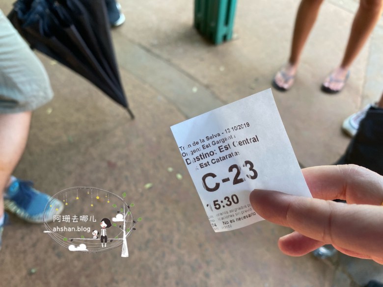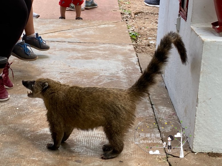 导游先买火车票前往最顶端的魔鬼咽喉顶端然后才走公园里的上下两个步道(约1个半小时),还有买了船游的队友因时间上的关系必须放弃。导游带我们到Cataratas Station,人很多,买了最快的一趟1点55分火车票(每20分钟一趟)。这时先在附近的快餐店先吃午餐,还有如果看到果子狸不要靠近也不要触摸,它的爪很利,被他抓到会皮会开花。