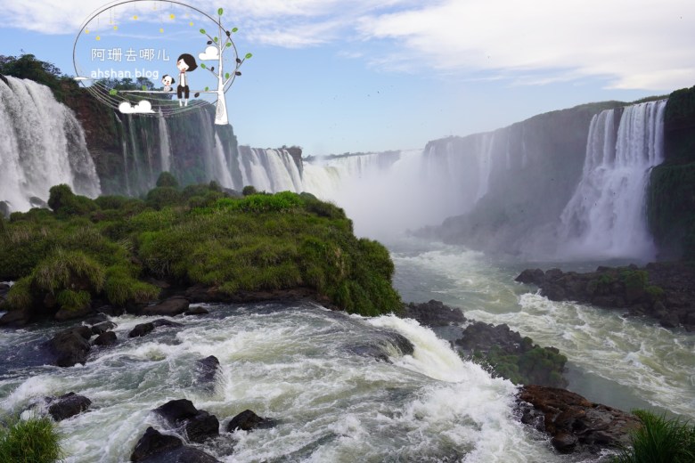 感觉水雾冲向我们,需要穿上雨衣。那步道就建在魔鬼咽喉前,近距离看到巴西端的魔鬼咽喉,就像大海倒悬,非常壮观!到达瀑布的终点还可以上电梯,从上俯视全景。