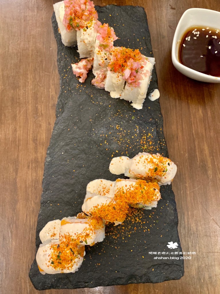 我们今天要去的日本餐厅并不是Maido,而是Espacio Lagom,店家呈上一盘双重口味的寿司还有炸云吞,厨师知道我们是新马一带的人,可以吃辣,在寿司上面洒了些辣椒粉,味道超赞的!他还给了我们折扣卡,希望我们之后再来光顾。