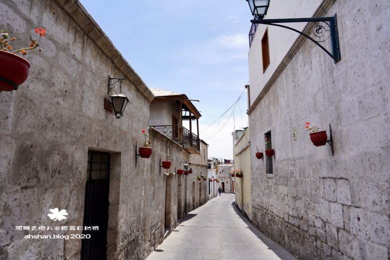 一路走着,看见整个地区的建筑物都是以白色为主,现在介绍阿雷基帕的历史:阿雷基帕(西班牙語:Arequipa)人口约80万,是秘鲁第二大城市。海拔2,380米,周边火山密集,共计有80座,其中三座在海拔5千公尺以上。该城保存了很多状况良好的西班牙殖民美洲时期的建筑物,大部分由白色火山岩White Volcanic Rock所建,故有La Ciudad Blanca(白城)的称号,阿雷基帕政府花了许多钱维持全市的整洁,故阿雷基帕也被誉为“秘鲁最美城市”。古城区於2000年被列为世界遗产。