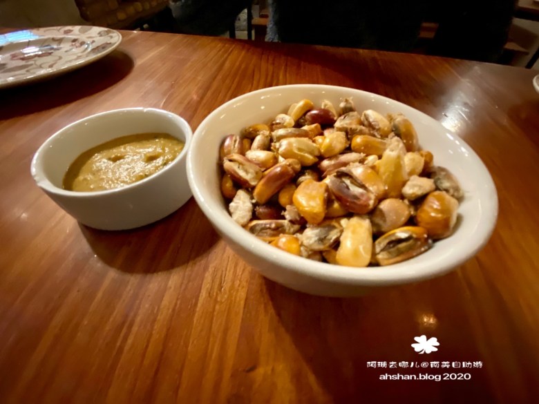 La Benita de los claustros这间店是导游以前工作过的店,是家传统秘鲁料理餐厅。一开始送上烤玉米,那玉米很大颗,烤得很香,配上一杯鸡尾酒,之后呈上Rocoto Relleno,這是一种红辣椒,里面塞滿了肉,上面放著鸡蛋和奶酪,我觉得不怎么好吃,只是特别罢了。这样尝试正宗的秘鲁菜肴也还行。