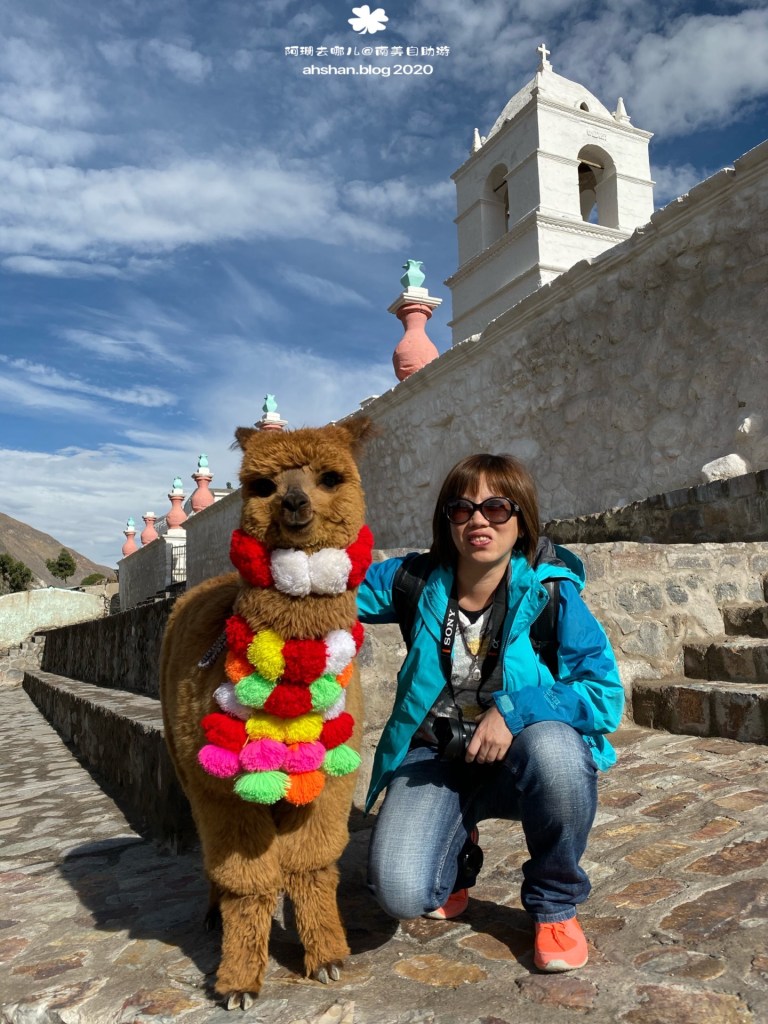 导游在凌晨3点来旅馆载我们,从Arequipa到Colca Canyon车程约3小时。6点半到餐厅吃早餐,这里的早餐有面包,鸡蛋,还有古柯叶coca。秘鲁许多地区属高海拔,古柯叶可以补充营养、解除疲劳和对抗高山症,所以被当地居民大量采用。吃完早餐前往一个叫Maca的小镇,那里有个白色的教堂,周围有许多摊位售卖纪念品/ 饰品,还有一些村民带着可爱的alpaca跟游客拍照!我们在那里停留15分钟。