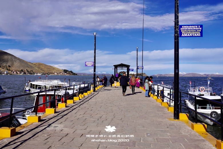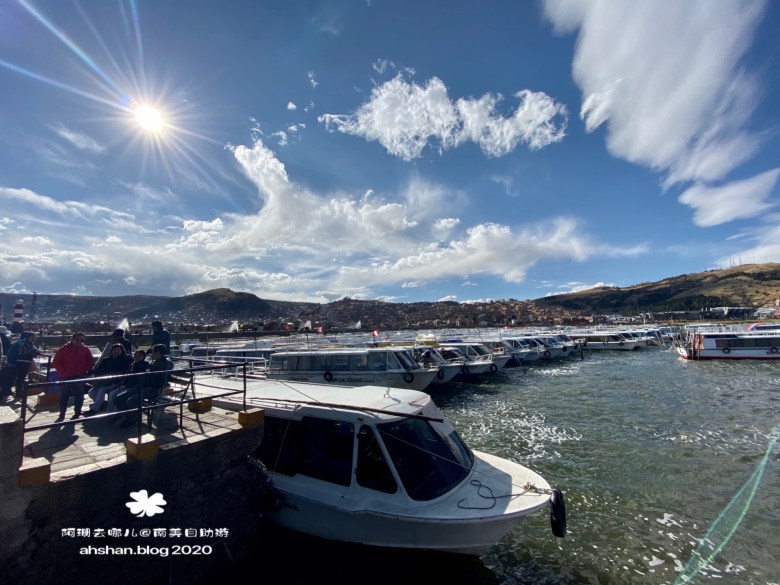 吃完午餐后慢步回旅馆,我每走完几步就要停一下,后脑勺感觉紧绷,呼吸急促。普诺Puno是整个秘鲁海拔最高的地方,达3860米,高山症通常会在海拔2500米以上才开始引发,而Puno就属于“非常高海拔”地区。回到旅馆稍作休息,3点Peru Hop的导游过来载我们到码头。我下了车慢慢跟着大队,最后一个到码头上船。