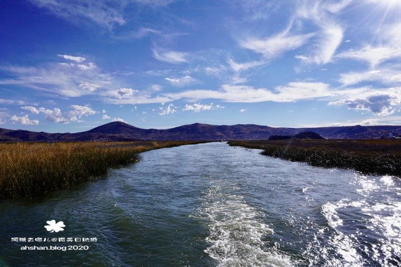 到了另一个岛,那里有间“行政处”,我们可以在护照上盖上Uros岛的盖章(S/.1)。盖完后便坐船回Puno。在此欣赏南美最高內陆湖泊美丽之湖,蓝天白云,映照著碧藍湖水,就像走进的另一个世界。
