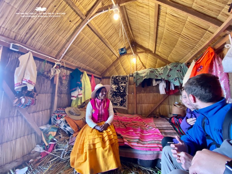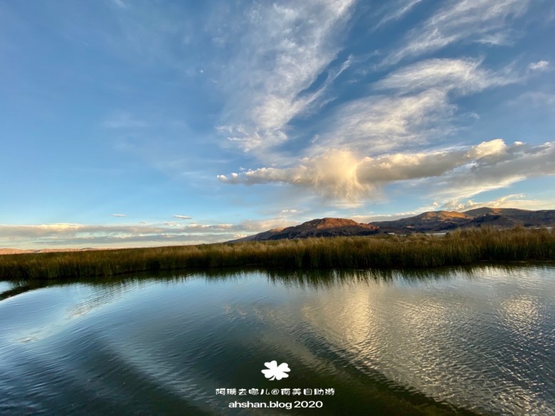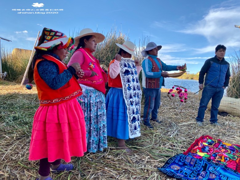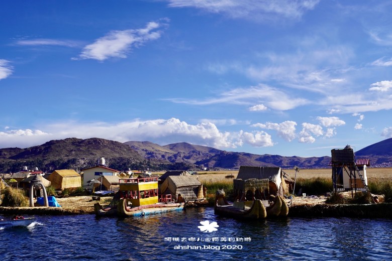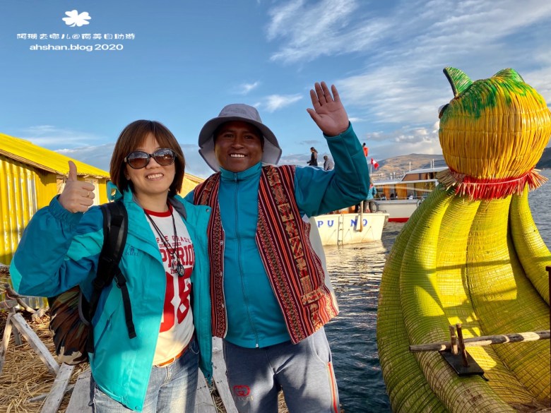 3点半,的的喀喀湖Lake Titicaca之旅开始。Lake Titicaca是南美洲第一大淡水湖,它被印第安人视为圣湖,是世界上海拔最高且大船可通航的高山湖泊。船缓缓地向前行驶,30分钟后抵达鸟洛岛Uros Island。目前湖内有40多个浮岛,每个岛大小不一。小的可住10多人,大的上面还有学校,商店,邮局等。岛上有几间芦苇屋和瞭望塔,岛本身用芦苇草建成,並以几枝竹枝插在水底以固定位置。这个旅程让我們了解岛民是如何在少了电力系统及瓦斯得以浮岛上生活,这也是个浓郁印第安色彩的生活方式。