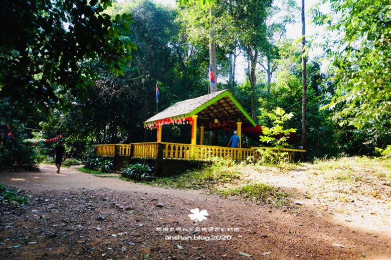 从另一条路下山,沿路还可以看到猴子。山脚斜坡也设有休闲中心。休闲中心由10余座独立小楼和一个泳池组成。出完汗,是时候去找吃的补充体力!